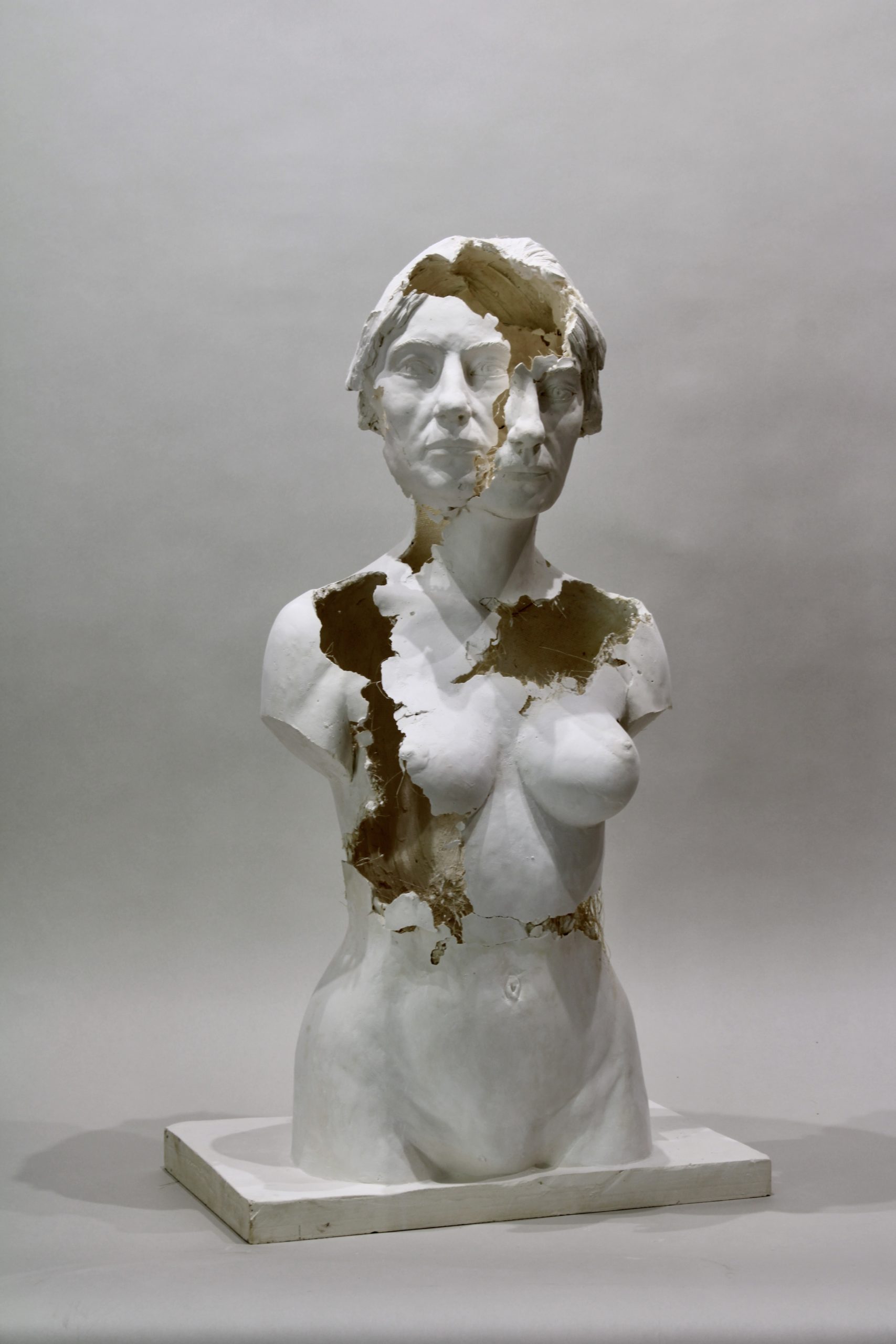 Deux sculptures en hommage à l’auteure compositrice interprète Barbara sont nées à partir d’un premier portrait de l’artiste. Celui-ci à été réalisé d’après photo en terre avant d’être moulé. Un deuxième portrait est ensuite réalisé à partir du premier, avec une autre expression. Les deux sculptures sont la base de la création en plâtre, toile de lin, bois et bacula des eux hommages, produits selon le principe Empreintes-Enveloppes.